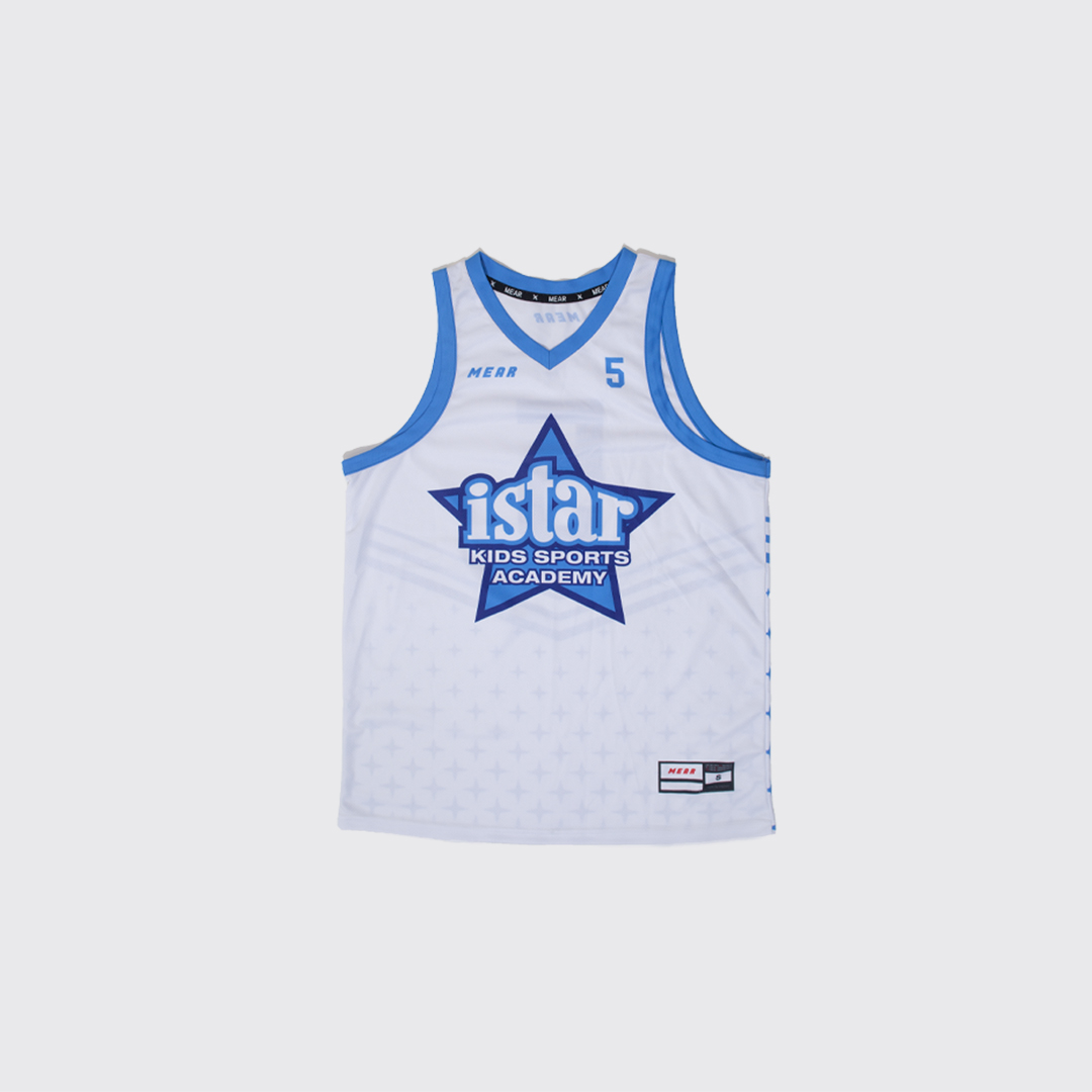 iStar Kids Sports Academy 농구유니폼 디자인 리뷰인천 유소년 농구교실 아이스타(iStar Kids Sports Academy)를 위해 제작된 이번 농구유니폼은, 아이들을 위한 스포츠웨어가 갖춰야 할 모든 요소를 충실히 담아낸 완성도 높은 농구유니폼 제작 사례입니다. 화이트와 스카이블루의 조합, 별 모티프를 활용한 패턴, 그리고 아이스타 브랜드 엠블럼까지 — 사진 한 장 한 장을 통해 이 유니폼이 얼마나 세심하게 설계되었는지 하나씩 살펴보겠습니다. 컬러 — 깨끗함과 활기를 동시에이 유니폼의 컬러 구성은 명쾌합니다. 화이트 베이스에 스카이블루 포인트, 단 두 가지 색으로 전체를 완성했습니다. 상의는 흰색 바탕에 파란 라인과 파란 그래픽을 얹었고, 하의 반바지는 반대로 스카이블루를 메인으로 흰색 밑단 처리로 마무리했습니다. 상하의가 각각 메인과 서브 컬러를 뒤바꿔 사용하는 이 구성은, 세트로 입었을 때 서로를 자연스럽게 보완하면서도 각각 따로 입어도 완결된 느낌을 줍니다.선택된 스카이블루는 너무 진하지도, 너무 연하지도 않은 중간 채도의 밝은 블루입니다. 어린이 스포츠웨어에 자주 사용되는 원색 계열 대신 이 톤을 선택한 것은 탁월한 판단입니다. 활기차고 긍정적인 분위기를 주면서도 시각적으로 부담스럽지 않아, 실제 경기 상황에서 선수들이 오래 입고 뛰어도 피로감이 느껴지지 않는 컬러입니다. 또한 화이트 바탕과의 대비가 명확해 경기 중 팀 식별도 용이합니다. 엠블럼 — 이 유니폼의 얼굴앞면 가슴 중앙에 크게 자리 잡은 iStar 엠블럼은 이 유니폼에서 가장 중요한 시각적 요소입니다. 네이비와 스카이블루 두 가지 블루로 채워진 오각별 안에 'iStar'라는 브랜드명이 자리하고, 그 아래 'KIDS SPORTS ACADEMY'라는 서브 텍스트가 아치 형태로 배치되어 있습니다. 엠블럼 전체의 외곽도 별 모양으로 마감되어 있어 중앙의 별과 겹쳐지며 입체적인 레이어 효과를 냅니다.엠블럼 디자인에서 특히 눈에 띄는 것은 서체 선택입니다. 'iStar' 레터링에 사용된 둥글고 통통한 볼드 서체는 어린이 스포츠 아카데미라는 정체성과 정확하게 맞아떨어집니다. 딱딱하거나 위압적이지 않고, 친근하고 재미있는 인상을 주면서도 스포츠웨어로서의 힘 있는 느낌도 잃지 않았습니다. 유소년 대상 브랜드가 엠블럼에서 자주 실패하는 지점 — 너무 유치해지거나 반대로 너무 딱딱해지는 것 — 을 이 서체 선택이 깔끔하게 해결하고 있습니다. 전면 패턴 — 보이는 듯 안 보이는 별앞면 전체를 가득 채운 별 모양 패턴은 언뜻 보면 단색처럼 보이지만, 자세히 들여다보면 흰색 바탕 위에 같은 흰색 계열의 별 실루엣들이 촘촘하게 배치되어 있습니다. 일반적으로 '톤온톤 패턴' 또는 '워터마크 패턴'이라 불리는 이 기법은, 유니폼 전체에 텍스처와 깊이감을 부여하면서도 시각적으로 과하지 않게 절제된 완성도를 만들어냅니다.이 패턴의 영리한 점은 엠블럼이나 번호 등 중요한 그래픽 요소들을 방해하지 않는다는 것입니다. 배경에 조용히 깔려 있으면서 전체 디자인에 리듬감을 더하는 역할에 충실합니다. 아이스타 브랜드의 핵심 모티프인 '별'을 패턴으로까지 확장해 사용한 것은 브랜드 일관성 측면에서도 매우 좋은 선택입니다. 엠블럼의 별, 패턴의 별, 이름의 'Star'까지 — 브랜드 스토리가 유니폼 전체에 촘촘하게 녹아 있습니다. 후면 디자인 — 앞보다 더 풍성한 뒷면유니폼 뒷면은 앞면보다 오히려 더 많은 디자인 요소를 담고 있습니다. 상단에는 크고 굵은 스카이블루 숫자 '5'가 등번호로 배치되어 있으며, 그 아래로 V자 형태의 쉐브론 라인 3줄이 좌우로 뻗어 내려갑니다. 이 V자 라인은 유니폼에 방향성과 속도감을 부여하는 클래식한 스포츠웨어 디자인 요소로, 농구라는 스포츠의 역동성과 잘 어울립니다.쉐브론 라인 아래부터는 4포인트 스타, 즉 네 개의 꼭짓점을 가진 빛나는 별 모양의 패턴이 밀도 높게 채워져 있습니다. 이 패턴은 아래로 갈수록 더 촘촘해지며, 그라데이션 방식으로 밀도가 변화합니다. 단순히 패턴을 반복하는 것이 아니라 밀도 변화를 통해 시각적 흐름을 만들어낸 것입니다. 뒷면 전체를 봤을 때 시선이 자연스럽게 위에서 아래로 흐르며, 경기 중 움직임이 있을 때 이 흐름이 더욱 생동감 있게 느껴집니다. 넥라인 & 트리밍 — 디테일의 완성V넥 라인을 따라 선명한 스카이블루 파이핑 처리가 되어 있으며, 넥 안쪽에는 '미어 바스켓볼 로고 X 미어 바스켓볼 로고 X 미어 바스켓볼 로고'가 반복되는 제조사 테이프가 붙어 있습니다. 유니폼을 입고 넥라인이 벌어지거나 움직일 때 이 테이프가 살짝 보이는데, 이런 디테일 하나하나가 완성도 있는 유니폼 제작의 기준을 보여줍니다.오른쪽 가슴에 작게 배치된 등번호 '5'와 왼쪽에 위치한 미어 바스켓볼 로고도 균형감 있게 자리하고 있습니다. 하단 오른쪽에는 사이즈 정보와 브랜드명이 담긴 소형 라벨 패치도 부착되어 있어 실제 유니폼으로서의 완성도를 높여줍니다. 반바지 역시 왼쪽 허벅지에 iStar 엠블럼 소형 버전이, 중앙에 등번호 '5'와 미어 바스켓볼 로고가 배치되어 상의와 통일감 있게 마무리되었습니다. 세트 구성 — 상하의의 