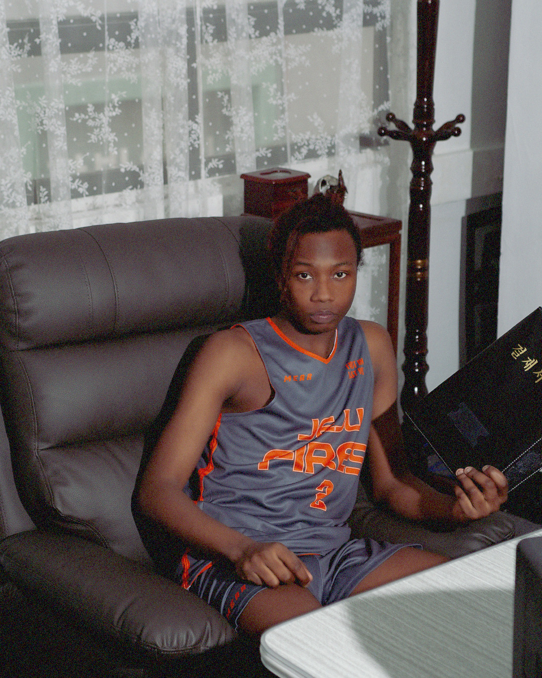 제주 FIRES 농구유니폼 디자인 리뷰앞서 소개한 웜업 긴팔티와 동일한 차콜 그레이-오렌지 컬러 시스템으로 제작된 제주 FIRES 농구유니폼입니다. 긴팔 웜업티와 이 농구유니폼이 하나의 완결된 세트를 이루며, 제주 FIRES 팀의 아이덴티티를 훈련부터 경기까지 일관되게 표현하는 농구유니폼 제작 사례입니다. 컬러 — 웜업티와 완벽한 연속성이 농구유니폼의 컬러는 웜업 긴팔티와 완전히 동일한 다크 차콜 그레이와 오렌지-레드 조합입니다. 같은 컬러 시스템을 유니폼과 웜업티에 동시 적용한 것은 팀 전체의 비주얼 아이덴티티를 하나로 통합하는 매우 효과적인 전략입니다. 경기 전 웜업티를 벗고 이 농구유니폼을 드러내는 순간, 컬러가 완벽하게 이어지며 팀의 일체감이 더욱 강조됩니다.차콜 그레이라는 베이스 컬러 선택은 이 농구유니폼에서도 여전히 유효합니다. 블랙보다 덜 무겁고 일반 그레이보다 강인한 이 톤은, 오렌지-레드와 만나 불꽃이 연기 속에서 타오르는 듯한 강렬한 인상을 만들어냅니다. 국내 농구유니폼 중에서도 이 차콜-오렌지 조합을 선택한 사례는 흔치 않아, 코트 위에서 제주 FIRES만의 독보적인 존재감을 발휘합니다. 전면 레터링 — JEJU FIRES의 불꽃 서체이 농구유니폼의 전면 중앙을 가득 채운 'JEJU FIRES' 레터링은 웜업티와 동일한 서체를 사용했습니다. 이탤릭 계열의 기울어진 볼드 서체로, 글자 하나하나에 전진하는 속도감이 담겨 있습니다. 'JEJU'를 상단에 작게, 'FIRES'를 그 아래 훨씬 크게 배치해 팀명의 핵심 단어에 시각적 무게를 집중시킨 레이아웃이 인상적입니다.웜업티와 다른 점이 있다면 농구유니폼 특유의 민소매 실루엣 위에서 레터링이 더욱 직접적으로 드러난다는 것입니다. 소매가 없어 전면이 오롯이 노출되는 농구유니폼의 특성상, FIRES 레터링이 차지하는 시각적 비중이 더욱 크게 느껴집니다. 오렌지-레드 그라데이션 레터링이 차콜 그레이 바탕 위에서 불꽃처럼 강렬하게 살아납니다. 전면 상단 — 엠블럼과 슬로건 디테일오른쪽 가슴 상단에는 팀 슬로건으로 보이는 'FIRST IN LAST OUT'이라는 텍스트가 오렌지-레드로 작게 배치되어 있습니다. 소방관의 정신을 담은 이 문구 — 가장 먼저 들어가고 가장 나중에 나온다 — 는 팀명 'FIRES'와 함께 제주 소방이라는 팀의 정체성과 직업적 자부심을 농구유니폼 위에 새긴 것입니다. 스포츠 유니폼에 이처럼 의미 있는 슬로건을 담는 것은 팀의 결속력과 정체성을 더욱 강화하는 방식으로, 이 농구유니폼을 단순한 경기복 이상의 존재로 만들어줍니다. 왼쪽 가슴에는 미어 바스켓볼 로고가 작게 자리해 균형을 잡습니다. 측면 라인 — 오렌지 파이핑의 흐름이 농구유니폼의 양 측면을 따라 오렌지-레드 파이핑 라인이 세로로 흐릅니다. 이 라인은 암홀 아래에서 시작해 유니폼 밑단까지 이어지며 유니폼의 실루엣을 또렷하게 정의합니다. 직선이 아닌 곡선 처리가 된 이 측면 라인은 역동적인 인상을 주며, 반바지 측면까지 동일한 오렌지 라인이 이어져 상하의를 하나의 흐름으로 연결합니다. 단순한 장식 라인임에도 이 오렌지 파이핑 하나가 농구유니폼 전체에 생동감과 속도감을 더해줍니다. 넥라인 — 오렌지 파이핑으로 마무리라운드넥 라인을 따라 선명한 오렌지-레드 파이핑이 처리되어 있습니다. 넥라인 파이핑은 착용자의 얼굴 가장 가까이에 위치하는 디테일로, 오렌지 컬러가 얼굴까지 올라오며 전체 착용 인상을 더욱 생생하게 만들어줍니다. 차콜 그레이 바탕 위에서 오렌지 파이핑이 명확한 경계선을 만들며 농구유니폼의 넥라인을 또렷하게 완성합니다. 반바지 — 세트 완성의 마지막 퍼즐반바지 역시 상의와 동일한 차콜 그레이 베이스에 오렌지 측면 라인과 밑단 트리밍으로 마무리되어 있습니다. 허리밴드에는 미어 바스켓볼 로고 라벨이 부착되어 있으며, 반바지 전체의 디자인 언어가 상의와 완벽하게 통일됩니다. 세트로 착용했을 때 상의의 측면 오렌지 라인과 반바지의 측면 라인이 자연스럽게 이어지며, 전신이 하나의 디자인으로 완결되는 느낌을 줍니다. 미어 바스켓볼 로고 양말과 함께 코디했을 때 발끝까지 이어지는 통일감도 이 농구유니폼 세트의 완성도를 높여주는 요소입니다.웜업티와의 세트 완성도이 농구유니폼이 특별한 이유 중 하나는 앞서 소개한 웜업 긴팔티와 함께 하나의 완결된 세트를 이룬다는 점입니다. 훈련 시에는 웜업티와 반바지를, 경기 시에는 농구유니폼 조끼와 반바지를 착용하는 방식으로, 차콜-오렌지 컬러 시스템이 모든 상황에서 일관되게 유지됩니다. 같은 컬러와 같은 서체를 웜업티와 농구유니폼에 동시 적용하는 이 방식은 팀 전체의 비주얼 아이덴티티를 가장 효과적으로 구축하는 방법입니다.총평제주 FIRES 농구유니폼은 팀명, 컬러, 서체, 슬로건까지 모든 디자인 요소가 하나의 일관된 스토리를 향해 정렬된 농구유니폼입니다. 소방관의 정신을 담은 'FIRST IN LAST OUT' 슬로건, 불꽃을 연상시키는 오렌지-레드 레터링, 그리고 연기처럼 묵직한 차콜 그레이 베이스까지 — 이 농구유니폼은 제주 FIRES가 코트 위에서 어떤 팀인지를 입는 것만으로 완벽하게 설명합니