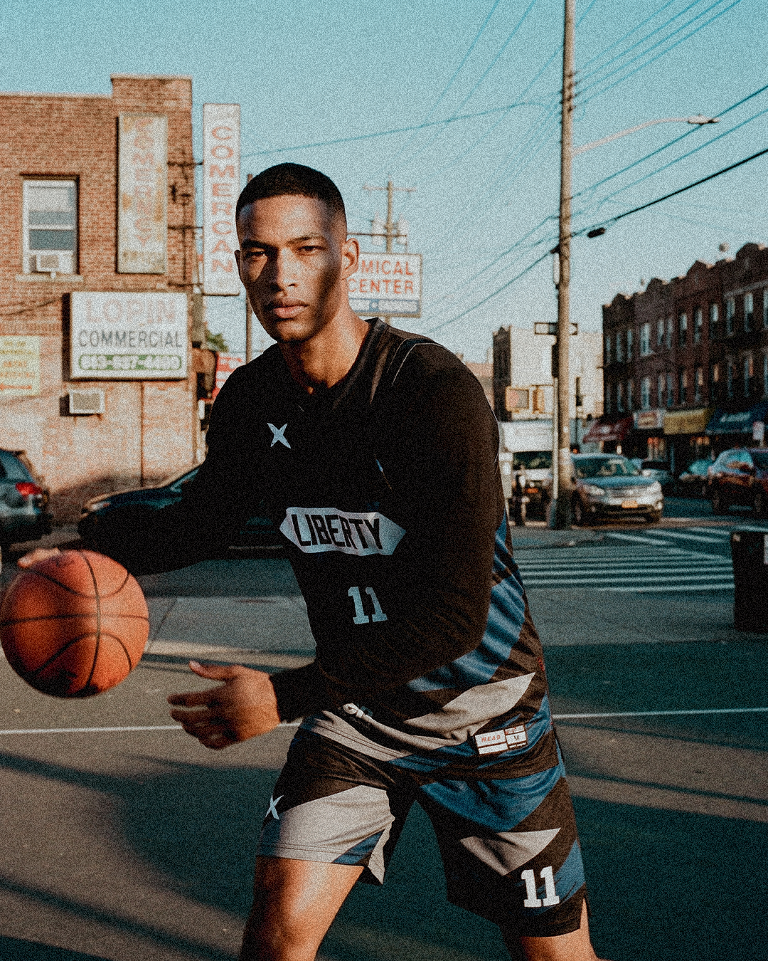 리버티 농구유니폼 디자인 리뷰팀 리버티를 위해 제작된 이번 농구유니폼은 블랙 베이스 위에 역동적인 기하학 패턴과 블루-그레이 컬러가 더해진, 지금까지 소개한 어떤 농구유니폼과도 다른 공격적이고 현대적인 무드의 농구유니폼입니다. 몰텐 공식 스폰서십까지 담아낸 이 농구유니폼은 아마추어 농구팀 유니폼의 수준을 프로 경기복의 영역으로 끌어올린 농구유니폼 제작 사례입니다. 컬러 — 블랙 베이스의 어둡고 강인한 세계이 농구유니폼의 베이스는 딥 블랙입니다. 블랙은 이 농구유니폼의 배경이자 전체 무드를 결정하는 컬러로, 그 위에 로열블루와 미드나잇 그레이의 기하학 패턴이 올라와 어둠 속에서 빛이 부서지는 듯한 강렬한 인상을 만들어냅니다. 화이트가 팀명 레터링과 번호, 엑스 마크, 넥라인 안쪽 테이프에 사용되어 블랙 바탕 위에서 선명하게 부각됩니다.블랙-로열블루-그레이-화이트의 네 가지 컬러가 층위를 이루며 이 농구유니폼에 다채로운 깊이감을 만들어냅니다. 단색 베이스에 패턴이 더해지는 방식이 아니라, 컬러와 패턴이 유기적으로 얽혀 하나의 복잡한 그래픽을 구성하는 이 접근 방식은 국내 농구유니폼 제작에서도 높은 수준의 디자인 역량이 필요한 방식입니다. 올오버 기하학 패턴 — 이 유니폼의 가장 강력한 요소이 농구유니폼에서 가장 주목해야 할 디자인 요소는 전면 전체를 가득 채우는 기하학 그래픽 패턴입니다. 날카롭게 각진 삼각형과 평행사변형, 대각선 라인들이 블랙 바탕 위에서 로열블루와 그레이로 충돌하며 격렬한 에너지를 만들어냅니다. 이 패턴은 단순한 장식이 아니라 농구유니폼 전면의 주인공으로 기능하며, 멀리서 보아도 한눈에 인식되는 강력한 시각적 임팩트를 지닙니다.상단의 로열블루 기하학 패턴이 가슴 주변에서 집중적으로 분포하고, 하단으로 내려갈수록 그레이 계열의 패턴이 자리를 잡으며 유니폼 전체에 상하 그라데이션 흐름이 만들어집니다. 이 흐름이 농구유니폼에 마치 위에서 아래로 빛이 쏟아지듯 자연스러운 시각적 유도를 만들어냅니다. 각진 도형들이 서로 다른 방향으로 배치되어 있어 코트 위에서 선수가 움직일 때마다 패턴이 다르게 보이는 효과도 기대할 수 있습니다. 팀명 레터링 — 육각형 배지 안의 리버티전면 가슴 중앙에는 블루 육각형 배지 안에 'LIBERTY'가 화이트 볼드 서체로 담겨 있습니다. 육각형이라는 도형 선택이 주변의 날카로운 삼각형, 평행사변형 패턴과 어우러지며 기하학 테마를 레터링 단계까지 일관되게 이어갑니다. 레터링 자체는 깔끔하고 읽기 쉬운 볼드 산세리프체를 사용해 복잡한 패턴 위에서도 팀명이 명확하게 읽히도록 설계되었습니다.배지 형태로 레터링을 담는 이 방식은 팀명이 단순한 텍스트를 넘어 하나의 상징이자 마크로 기능하게 합니다. 블루 육각형 배지가 블랙 바탕의 기하학 패턴 한가운데 자리하며, 복잡한 전면 그래픽 속에서도 팀명이 가장 먼저 눈에 들어오는 위계를 만들어냅니다. 엑스 마크 & 넥라인 테이프왼쪽 가슴 상단에는 엑스 마크가 배치되어 있습니다. 이 엑스 마크는 미어 바스켓볼의 시그니처 요소로, 리버티 유니폼의 날카로운 기하학 패턴과 자연스럽게 어우러지며 존재감을 발휘합니다. V넥 안쪽 넥라인 테이프에는 'MEAR X MEAR X MEAR'가 반복되는 패턴이 새겨져 있어, 유니폼 내부에서도 브랜드 아이덴티티가 완성됩니다. 몰텐 스폰서십 — 공식 경기용의 품격이 농구유니폼에서 특히 주목할 요소는 전면 하단의 몰텐 스폰서 로고입니다. 'molten — FOR THE REAL GAME'이라는 문구와 함께 공식 농구 공인구 브랜드인 몰텐의 로고가 화이트로 새겨져 있습니다. 몰텐은 국제농구연맹 공식 공급업체로, 이 스폰서 로고의 존재는 리버티 농구유니폼이 공식 경기에 출전하는 팀을 위한 진지한 경기복임을 명확히 보여줍니다. 아마추어 동호회 농구유니폼에 공식 스포츠 브랜드 스폰서십이 더해지는 것은 국내 농구유니폼 제작 사례에서도 쉽게 볼 수 없는 구성입니다. 총평리버티 농구유니폼은 블랙 베이스의 기하학 올오버 패턴, 육각형 팀명 배지, 몰텐 스폰서십까지 — 이 모든 요소가 프로 경기복의 문법을 그대로 따르면서도 리버티만의 독창적인 디자인 언어를 완성한 농구유니폼입니다. 이 농구유니폼을 입고 코트에 서는 순간, 상대 팀이 느끼는 압박감은 유니폼 디자인만으로도 이미 시작됩니다.